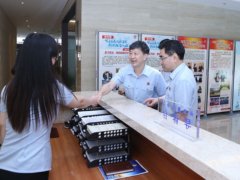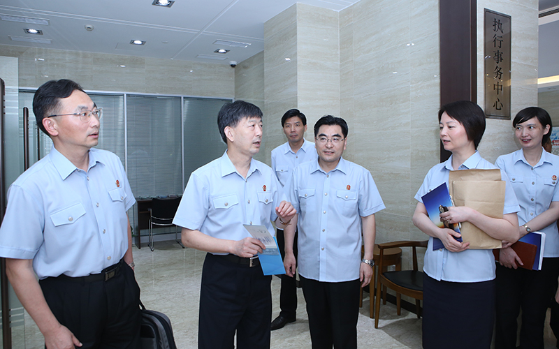 8月4日上午,高院党组书记、院长崔亚东率高院党组全体成员和部分部门负责人在开展“三严三实”第二专题研讨后,到三中院(知产法院)视察调研,参观了诉讼服务中心、执行事务中心、法庭、12368诉讼服务平台和正在建设的大法庭等。崔亚东对三中院半年来的建设成果给予充分肯定,对建设规范化、标准化诉讼服务中心、诉调对接中心和法庭提出要求。