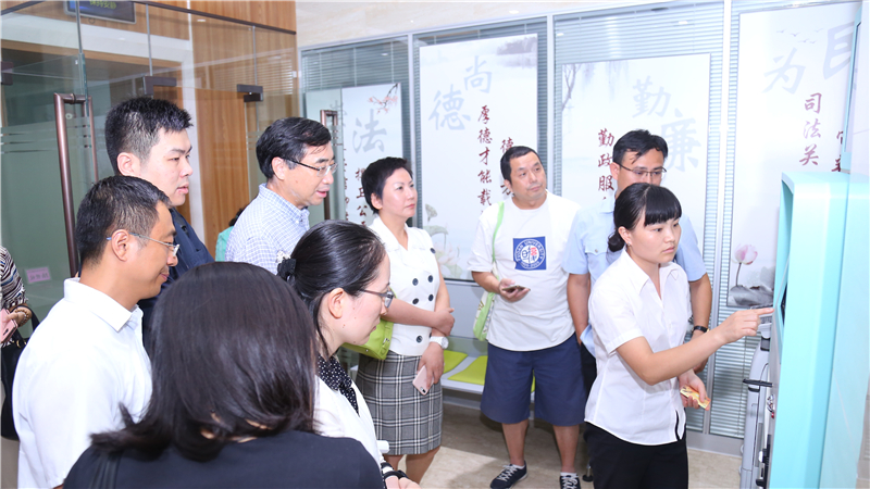 来宾们参观了诉讼服务中心、法庭等,观看了知产法院工作专题片,并进行座谈交流。凌崧副庭长介绍了知产法院的机构设置、人员构成、案件类型、工作机制等情况。徐珊珊主任、裘索会长感谢上海知产法院的热情接待,介绍了市律协特邀委员会、市欧美同学会法律分会成立的背景、宗旨、职能及目前运行情况。此外,双方还围绕司法改革所取得的成效、新型互联网审判方式、共享经济监管与风险控制等方面议题进行了深入交流讨论。