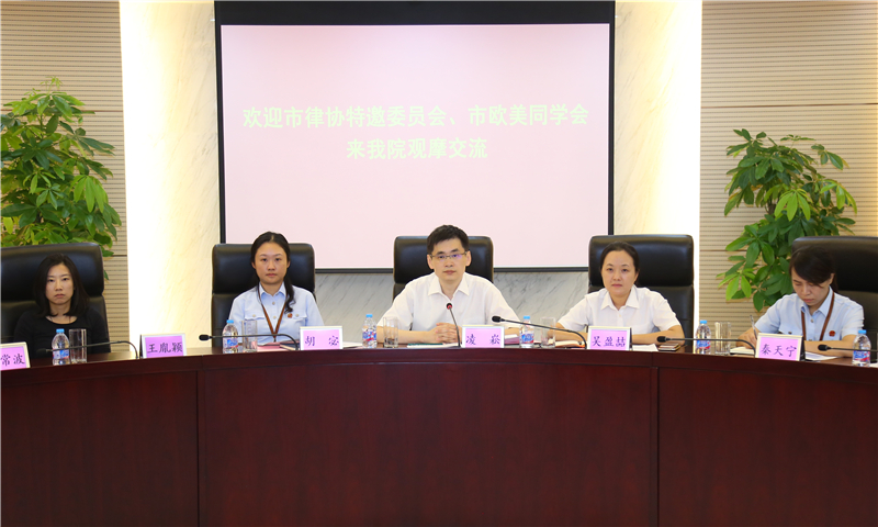 8月25日下午,市律协特邀委员会徐珊珊主任、市欧美同学会法律分会裘索会长一行来我院参观交流。根据院领导安排,知产一庭副庭长凌崧、法官胡宓,知产二庭法官吴盈喆等接待了来宾。